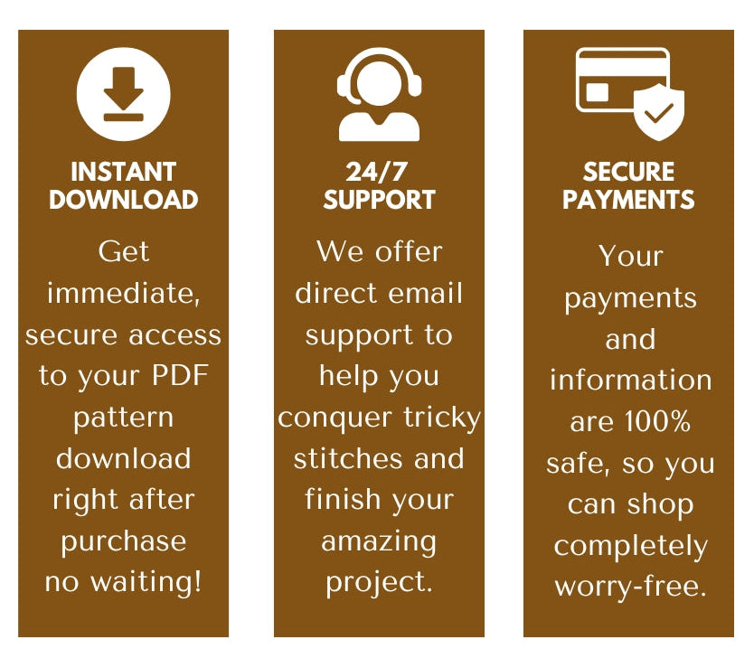 All products are digital crochet patterns. You’ll receive instant downloadable files, nothing is shipped in the mail.